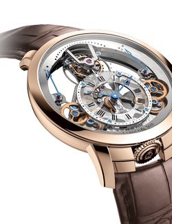 Deftly blending its British heritage with its Swiss watchmaking savoir-faire, Arnold & Son offers a new calibre to its Time Pyramid collection. With a skeletonized pyramid-shaped tourbillon seemingly floating between two sapphire crystals, the Time Pyramid Tourbillon is a true rendition of technical prowess and sleek elegance.
