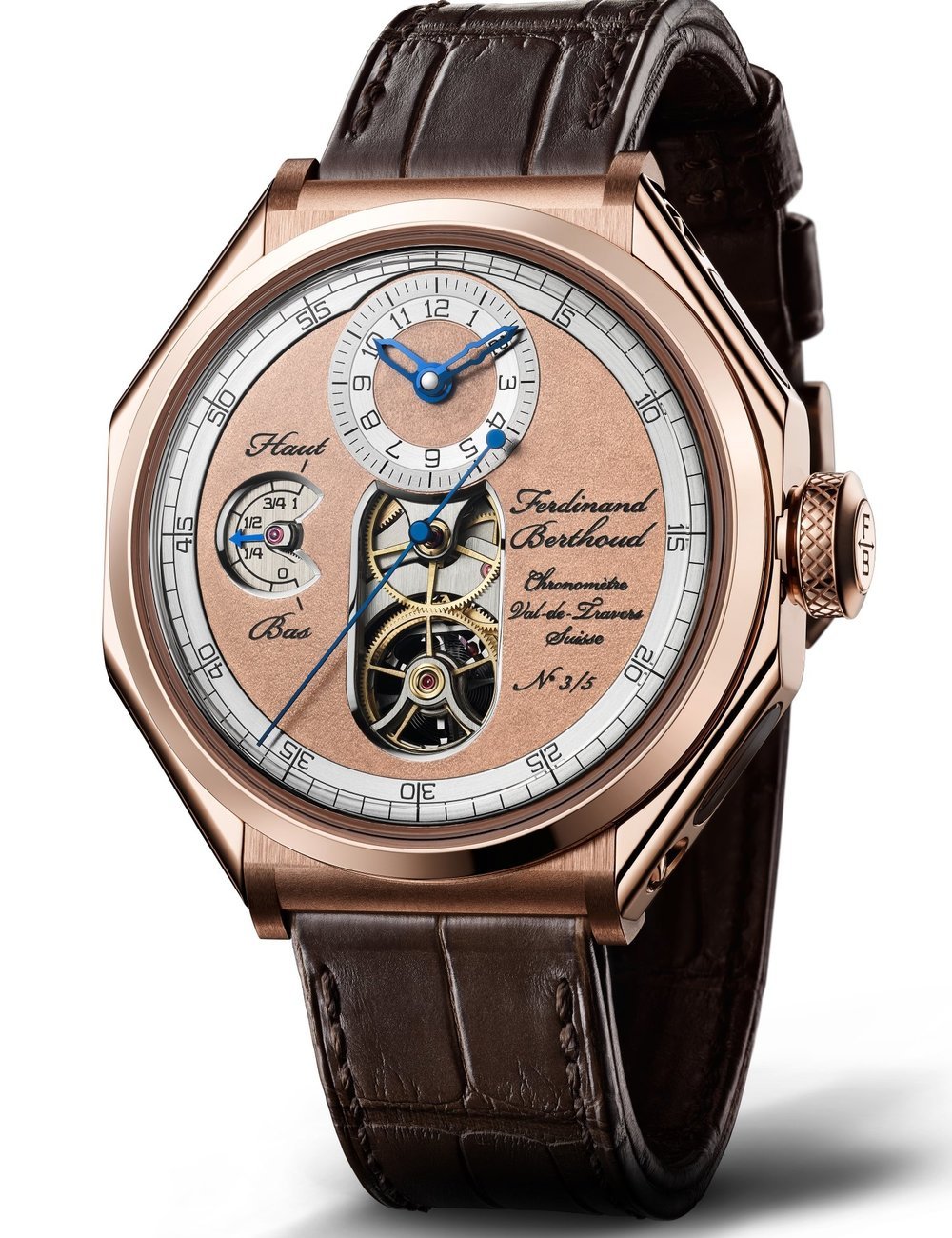 Chronométrie Ferdinand Berthoud unveils the “Œuvre d’Or” collection, a new artistic interpretation of its original creation, the Chronomètre FB 1. This model previously existed in two gold versions: white gold with titanium lugs (FB 1.1) and rose gold with black ceramic lugs (FB 1.2). The collection now welcomes two additional variations, reprising the precious metals of their predecessors, white gold (FB 1.1-2) and rose gold (FB 1.2-1) respectively, while adorning them with original decorations.