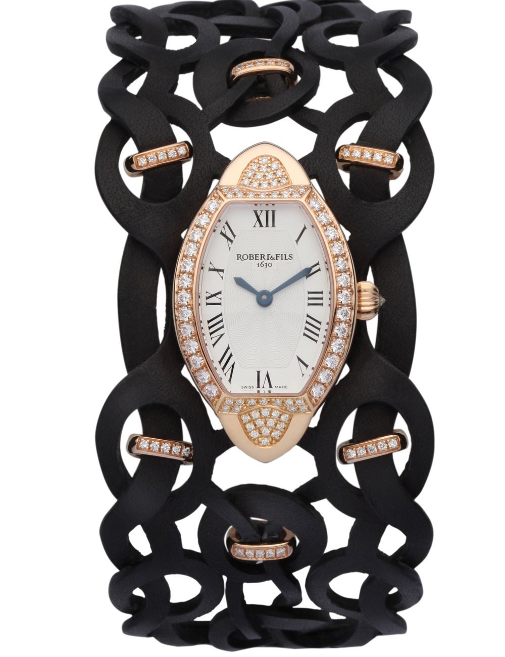 For hundreds of years, the Robert family has been producing watch movement for the Swiss industry. Gilles Robert represents the 11th generation in the family business. He revived the family tradition with this new collection, called “La Dentelle”. This feminine timepiece is equipped with a restored calibre but its most striking element is certainly its strap!
