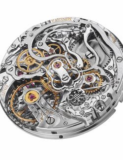 The timepiece also features a tachymeter (base 1000) at the centre of the dial in a colimaçon, snail shape, which allows the user to measure a length of time up to three minutes instead of one minute in a traditional chronograph scale around the dial.