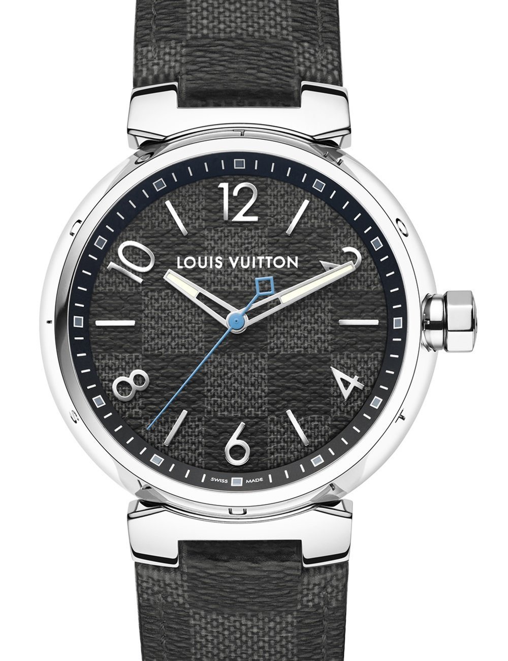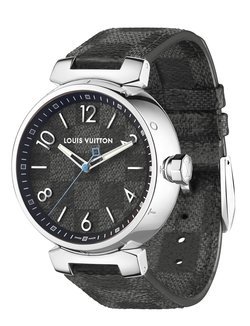 The Tambour watch, unique and recognizable, pays tribute to the first musical instrument whose rhythm is reminiscent of passing time. As a result of a clever alliance between two icons, the Tambour case and the Damier Graphite canvas of the leather goods, the Tambour Damier Graphite stands out as the emblematic masculine watch of Louis Vuitton.