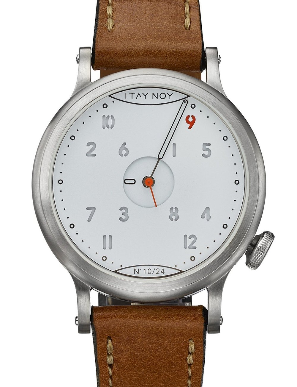 In this series the watch dial is reorganized into two contrasting displays. The traditional analog hands appear in the center; around them there are 12 digit-shaped windows indicating the hours, seemingly scattered at random over the dial, which are revealed in order, counter-clockwise. This dual display creates a new order, challenging the traditional way to read the time