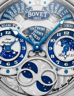 The success of the multiple time zones manufactured by BOVET 1822 illustrates collectors’ growing interest for useful functionalities as well as for ergonomic and intuitive timepieces that offer ease of use. Using their extensive experience, the BOVET 1822 watchmakers designed Récital 27 by making great use of the emblematic “writing slope” case’s proportions and thus meeting collectors’ expectations by offering them no fewer than three time zones which can be set to winter or summer hours for each chosen location.