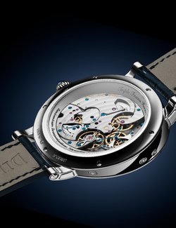 Hours, minutes, 2nd time zone (hours and minutes), 3rd time zone (hours and minutes), 24 cities indicator and day/night indicator for 2nd and 3rd time zone, double hemisphere moonphase and power reserve indicator, sub-seconds on the back