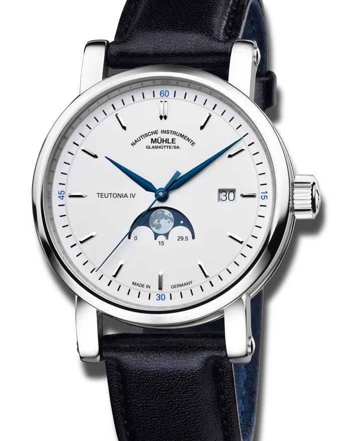 Hour, minute. Stop-second. Fast date and moon-phase correction.