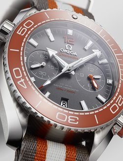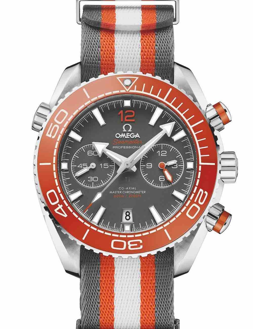 The new chronograph in the Seamaster Planet Ocean collection truly stands out thanks to its ceramised titanium dial. Its captivating effect is further accentuated by rhodium-plated hands and indexes, as well as orange touches such as the varnished hand on the 3 o’clock subdial, the applied number 12 and the tip of the central seconds hand.