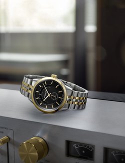 Central hours and minutes. Small seconds at 6 o’clock. Date window: Half-moon opening