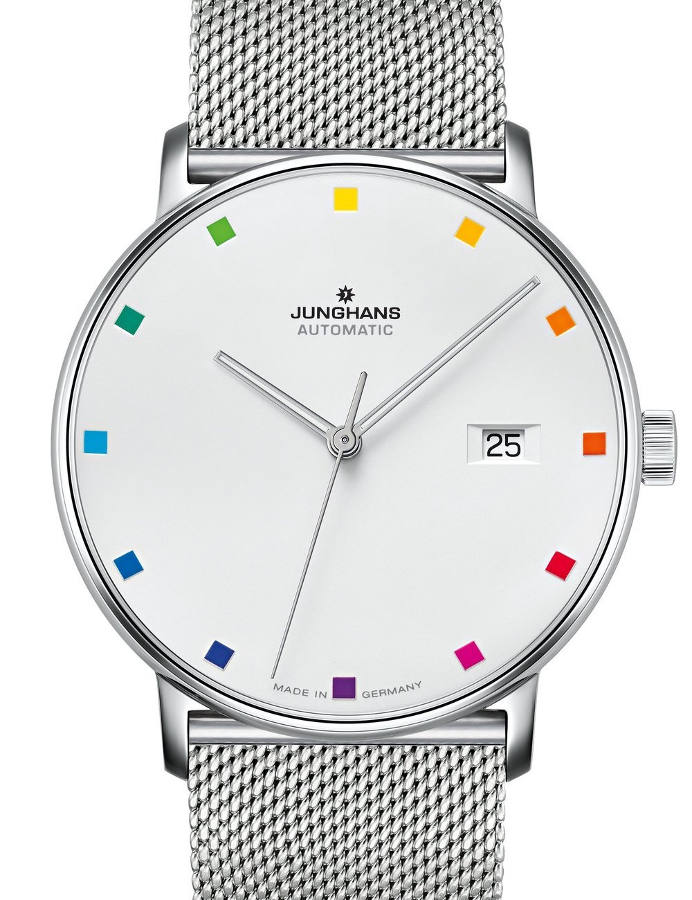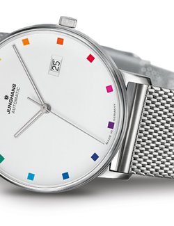 In 2019, for the 100th anniversary of the Bauhaus, Junghans presents the Form A, a model limited to 1 000 copies with lacquered hour markers using the 12 colors of Johannes Itten’s chromatic circle. The painter, theoretician and professor of Swiss art developed, as one of the first teachers of the Weimar Bauhaus, a new theory of color types and integrated it into his courses.
