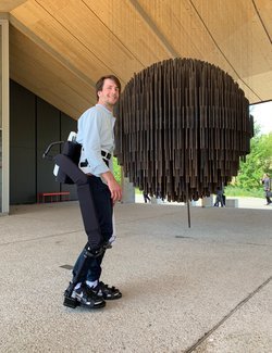 Autonomyo is an exoskeleton that meets multiple challenges. In order to allow total freedom of movement, it features 6 motorized axes at the hips and knees, as well as 6 passive axes at the ankles. The exoskeleton allows the user to make complex movements far beyond a robotic walk.