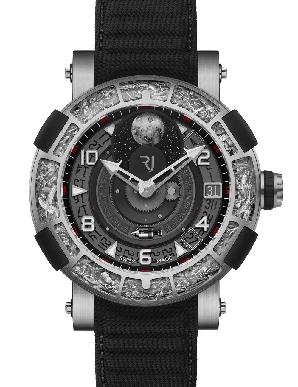 RJ-2180 Mechanical self-winding movement with RJ 360° Moon phases mechanism.Bidirectional self-winding with oscillating weight with Saturn V rocket engines design. 28’800 alternances/hour (4 Hz). Power reserve: 38 hours approximately.