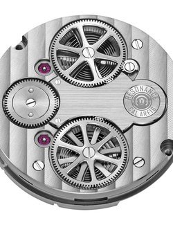 Armin Strom manufacture calibre ARF16. Manual-winding, patented resonance clutch spring, 2 mainspring barrels . Regulating system: two independent regulation systems connected by a resonance clutch spring. Power reserve: 48 hours