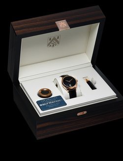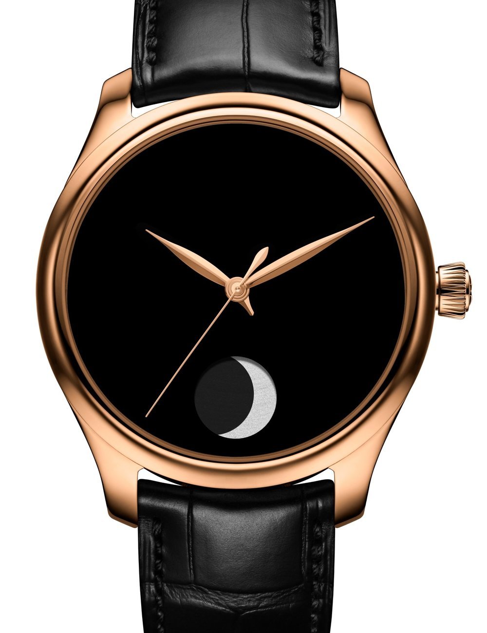 Hand-wound HMC 801 Manufacture calibre. Power reserve: minimum 7-day with a double barrel.Interchangeable Moser escapement. Frequency: 18,000 Vib/h