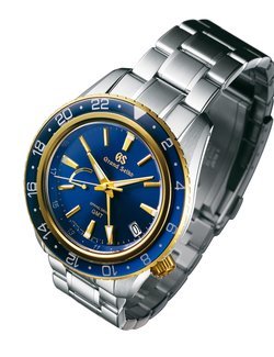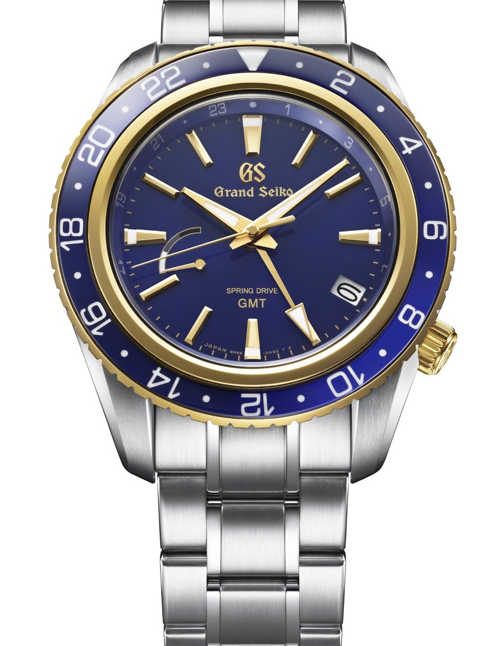 Grand Seiko is pleased to introduce a new Spring Drive GMT watch in its sport collection. The watch uses 18k yellow gold in the rotating bezel, which is the first for Grand Seiko, and the contrast between the yellow gold of the bezel and the blue of the indicator ring is a new color scheme within the sport collection. With an independently adjustable hour hand, this Spring Drive GMT watch is perfect for the international traveler, and the watch is made available worldwide from September.