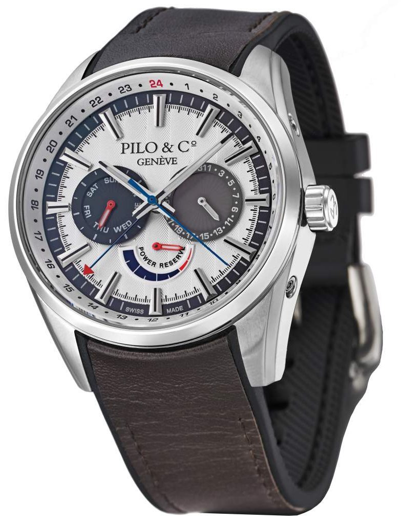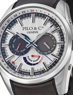 This new Pilo & Co Genève Pièce d’Exception PW01 is inhabited by a movement called Calibre Manufacture Maison PW01, a mechanical self-winding movement with 27 rubies vibrating at 28,800 vibrations per hour (4 Hertz). This exceptional timepiece is a reinterpretation of a micromechanical package of simple complications in the “watchmaking of the fundamentals” mode: Day-Date (day and date indication), GMT (second time zone) and a 40-hour power reserve indicator.