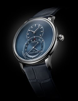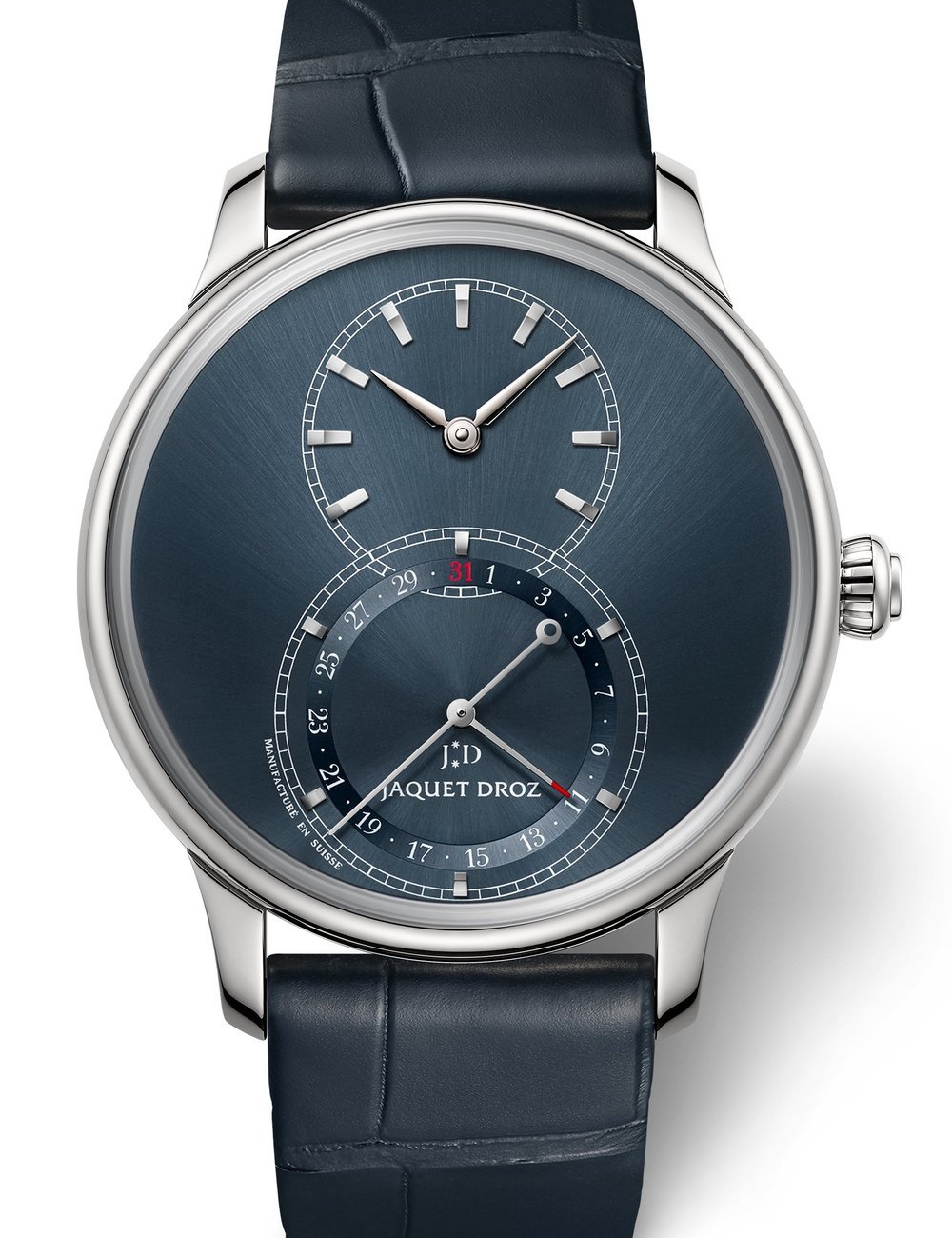 With the novel color on an up-to-the-minute model, the Grande Seconde Quantième is back with a new blue dial that is perfectly on trend. Outstretched beams created using the decorative sunray technique radiate the dial towards the edges of the timepiece, giving it a fresh glow.