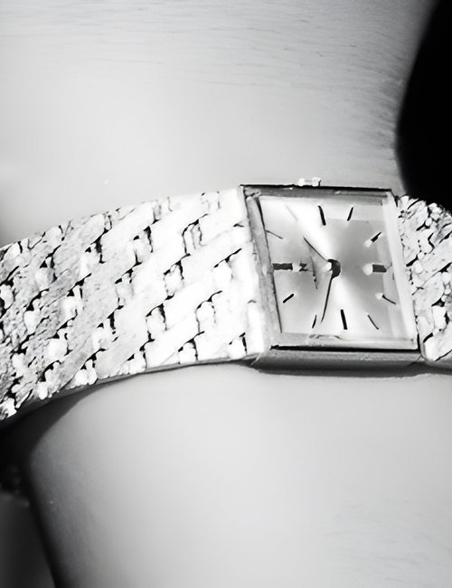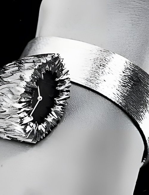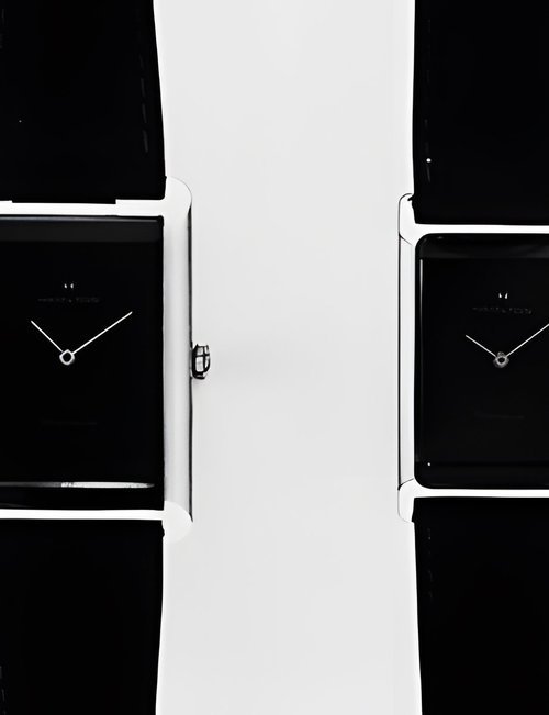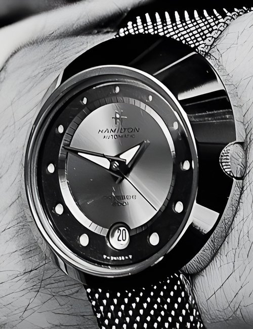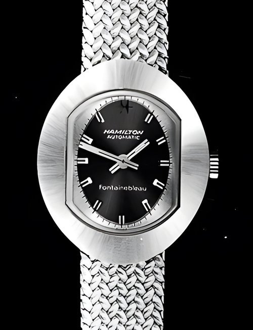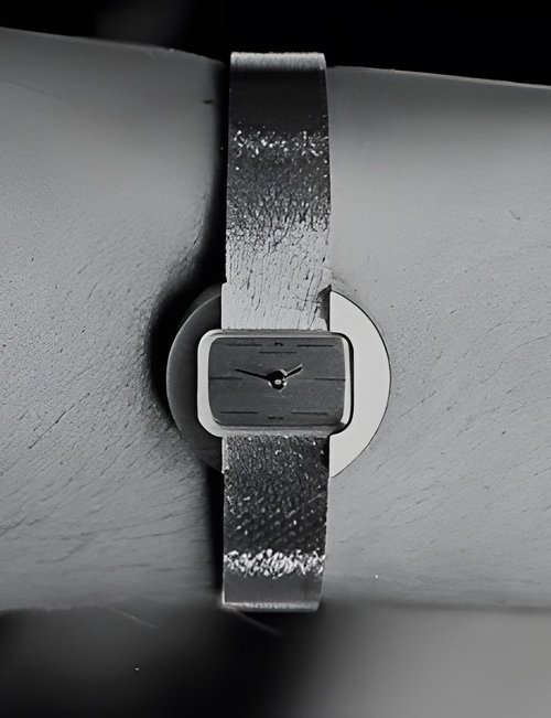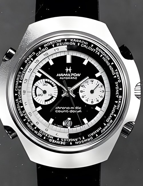 This is an authentic ‘70s update right down to the smallest details. The black dial has a unique structure, which calls to mind the case of cameras or binoculars from the pre-digital age.