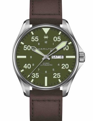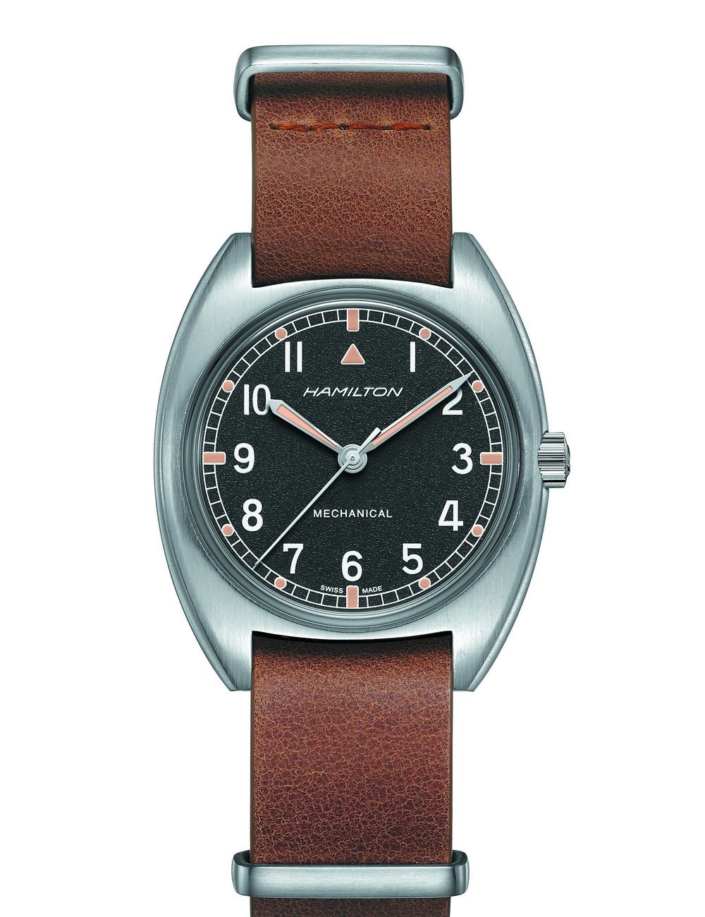 The engine is the modern H-50 hand winding movement. It is a mainstay of some of the best-known Khaki watches and packs an awesome 80 hours of power reserve as well as the Hamilton precision pilots need.