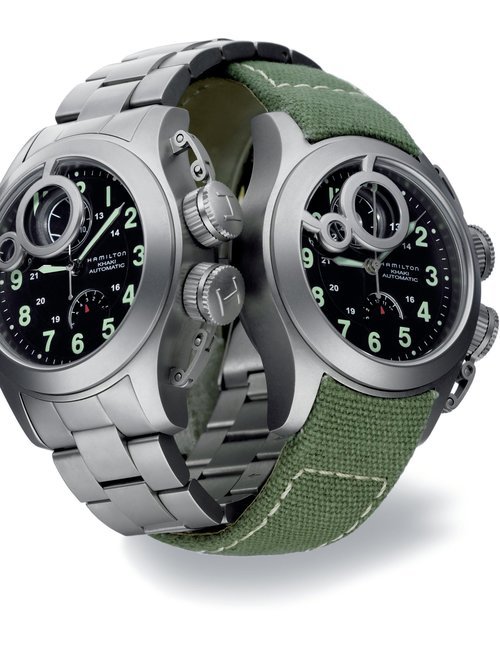 Finishing off the military feel are the Nato straps in a choice of durable storm gray textile or vintage-look brown leather.