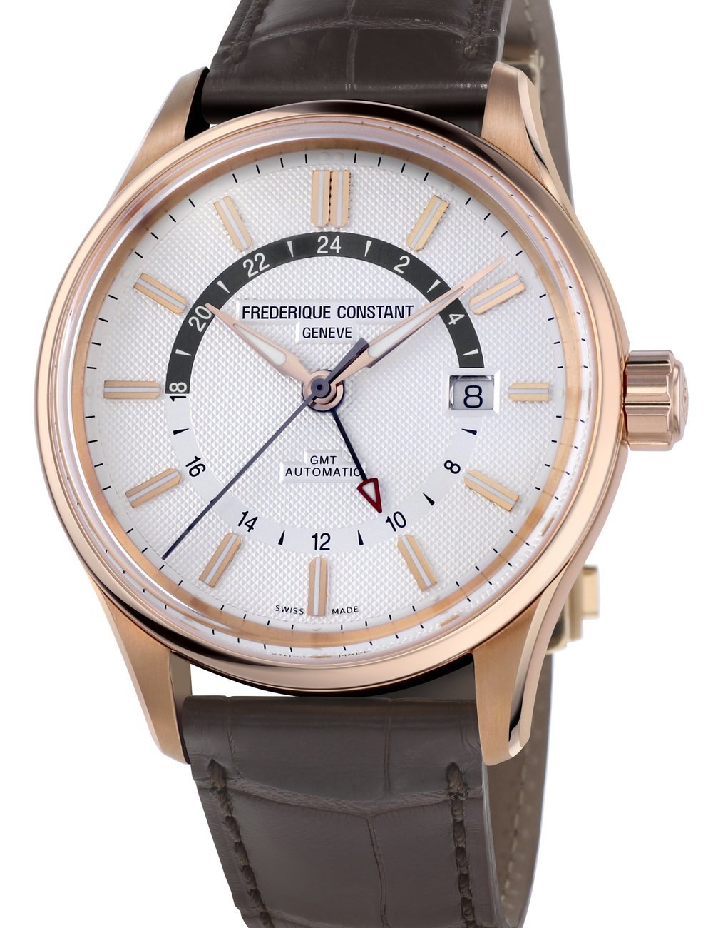 FC-350, Automatic GMT with date (in-house GMT module). 38-hour power reserve, 26 jewels, 28'800 alt/h.