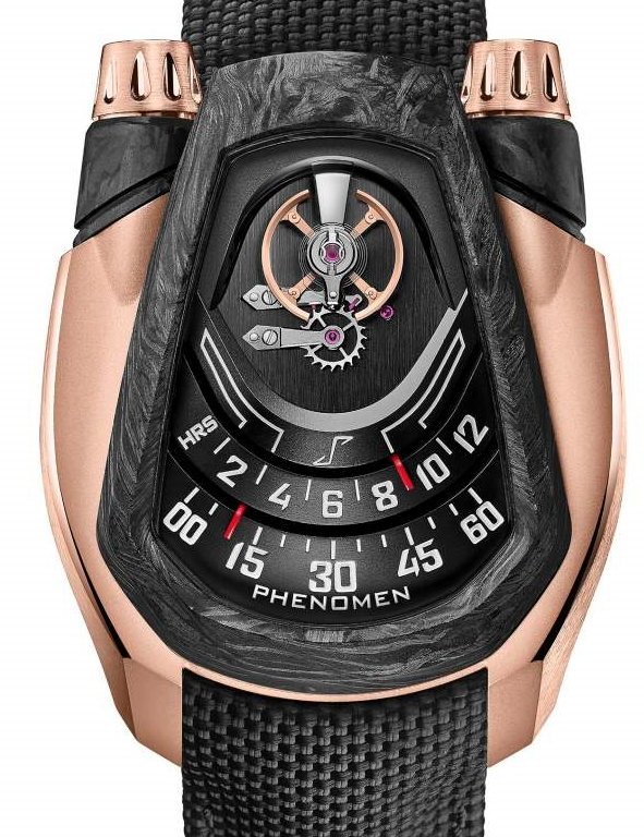 With the combination of the timelessness of Gold and the technical nature of Carbon, Phenomen audaciously affirms its avant-gardist DNA. For this Rose Gold-Carbon edition, Phenomen focuses on the finishing touch, alternating between several textures: polished, satin and blasted, and a juxtaposition of materials to create a dynamic combining elegance and character.
