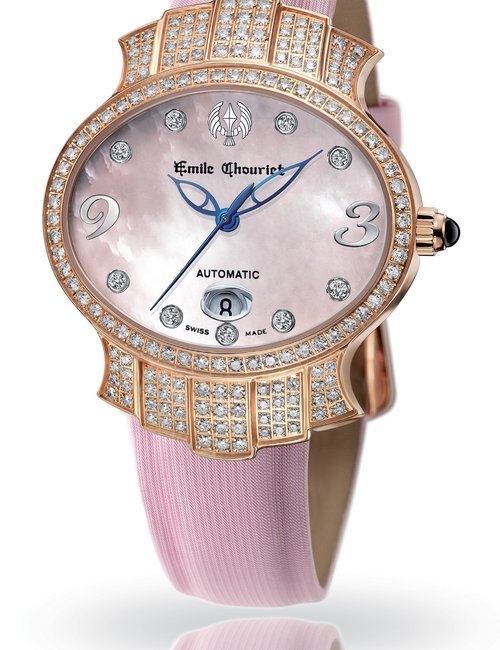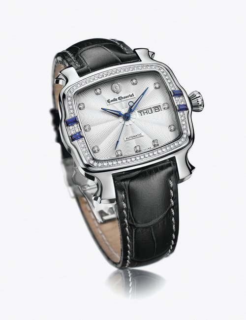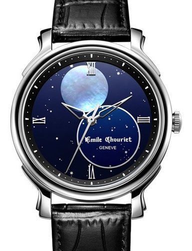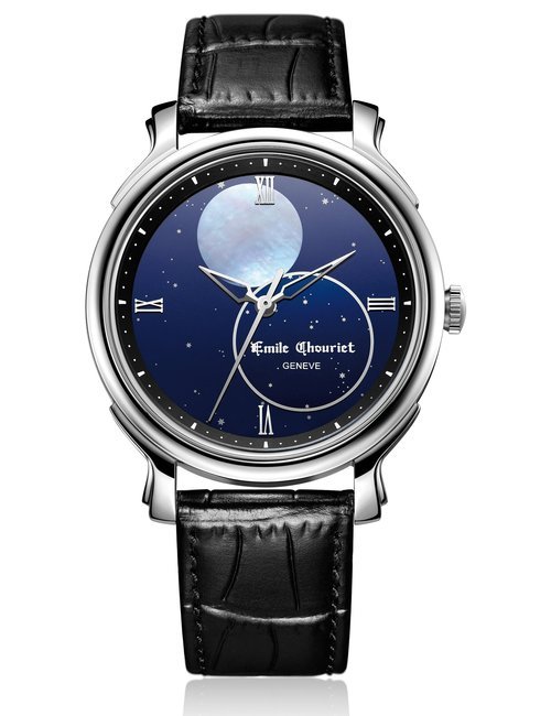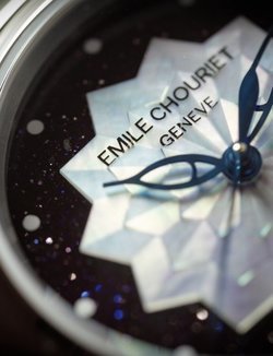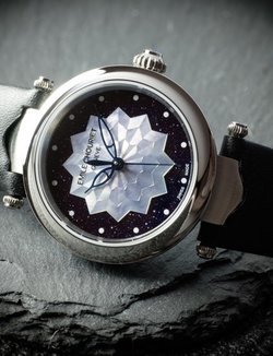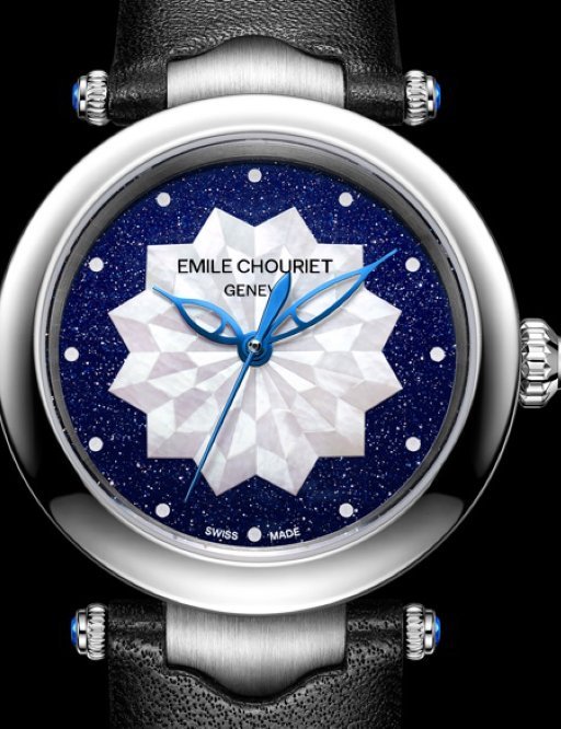 Perfectly complementing the luster of the mother-of-pearl is the astral backdrop of the dial. Resembling a clear, starry night sky, the dial is crafted from aventurine, a deep blue mineral glass with metal flecks that sparkle with colorful reflections of light. The rounded blue hands mimic the form of leaves, and are open to allow as much visibility on the dial as possible while retaining legibility. At once romantic and poetic, the mother-of-pearl lotus seemingly Fair Lady Dream Night EC5316 Automatic movement, steel case, Mother of Pearl and Aventurine dial