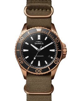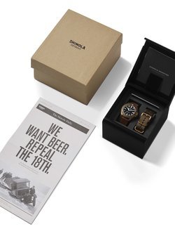 The Bronze Monster Gift Set will transport you back to the 1920s with an automatic timepiece that features a bronze case and dark colorways, inspired by the Prohibition era and the stealth of rumrunners on the Michigan-Ontario waterway.