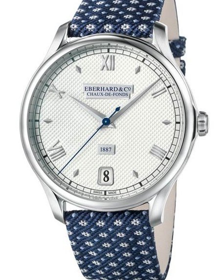 The new “1887” model is a watch with balanced lines, with a 41.80 mm diameter steel case that leaves ample space for a dial of extreme elegance, available in two versions with gold or rhodium-plated numbers and indices. The taste is a bit “rétro”, thanks to the “clou de Paris” workmanship and the trapezoidal date window, which has already been adopted by Eberhard & Co. for some historical models.
