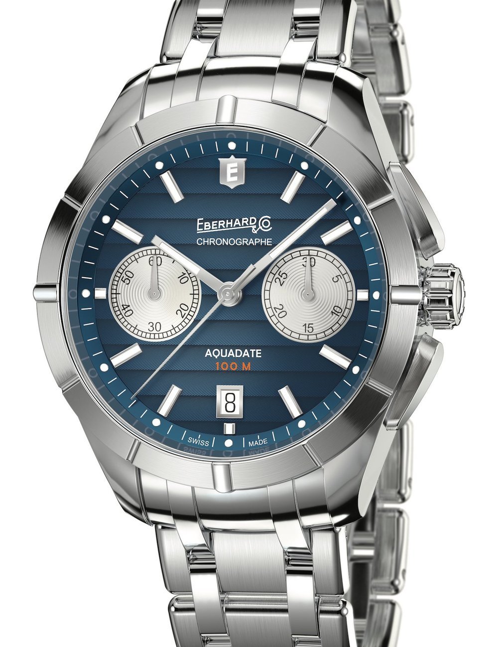 Animated by a calibre that is proven to be robust and reliable, Aquadate Chrono remains true to the aesthetic codes of the time-only version, starting with the bezel decorated with knurls. The dial, available in different colours, is enriched with “vagues-droites” decoration and the shield – symbol of the Maison – at 12 o’clock. As anticipated by the piece’s name – “Aquadate” – the date window at 6 o’clock is easy to read and the piece is water resistant to 100 metres.