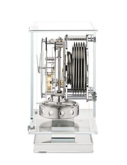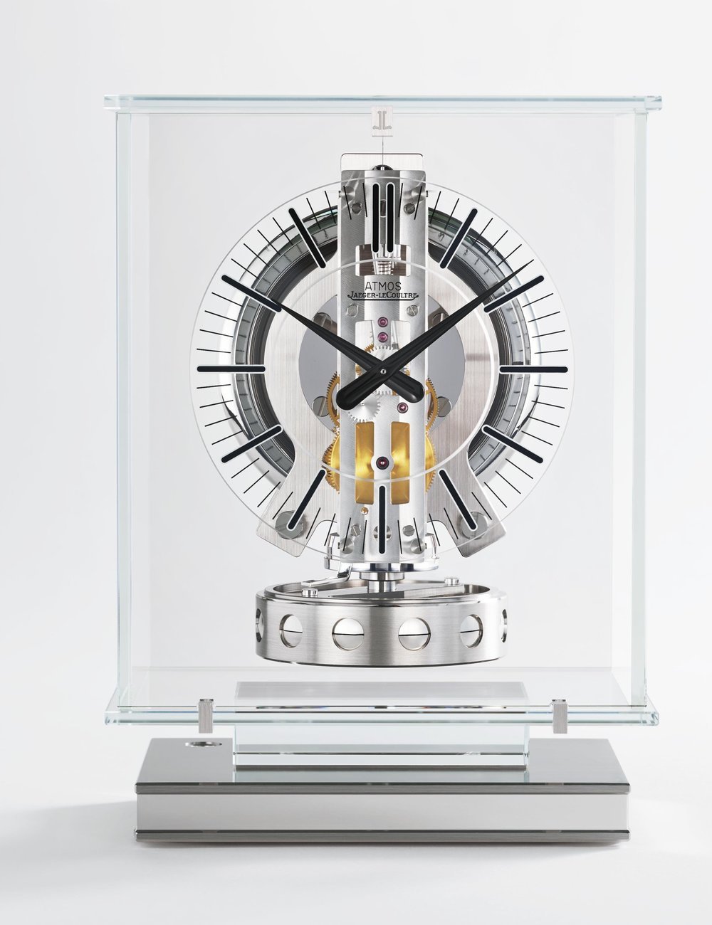 Inside its crystal clear cabinet made of anti-reflective glass, the Atmos Transparente clock displays a strikingly sober new face. From every angle – front, side or back – the vision is captivating and the equilibrium is perfect.