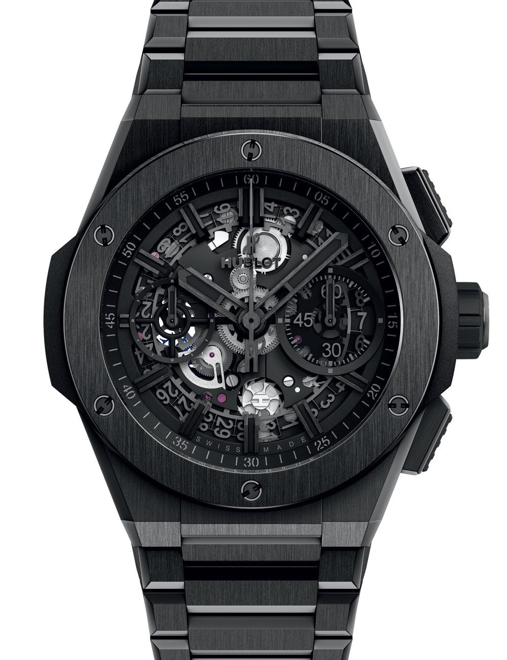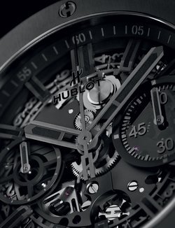 fused with the case. An integrated bracelet means a restyled case, with Hublot’s signature codes: