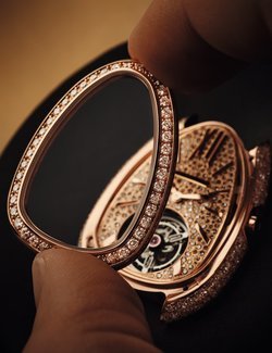 When it was presented last year, the Serpenti Seduttori reimagined the Serpenti cult watch. The women’s watch that is Born to Be Gold, it elevates the preciousness of time and marks the golden moments of a woman’s life. Now, Serpenti Seduttori continues its journey with the debut of new models that are Born to Shine, including the rare tourbillon movement for women, BVL150 Caliber. The movement of the new Seduttori represents that synthesis of Swiss knowledge and jewelry-making savoir-faire that only Bulgari can execute — and is a pinnacle of design as the smallest tourbillon on the market. It revives the lost tradition of the small mechanical movements that were replaced by the quartz in the early 70’s.