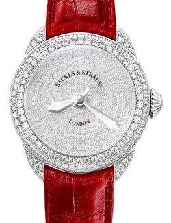 Available in two sizes (33mm & 37mm), the Piccadilly Mystery Red Heart’s 18kt white gold case and buckle is meticulously set with white Ideal Cut diamonds. Finally, as Backes & Strauss tradition dictates, each piece is masterfully completed with the brand’s trademark Ideal Cut diamond set into the crown, also known as the Jewel in the Crown.