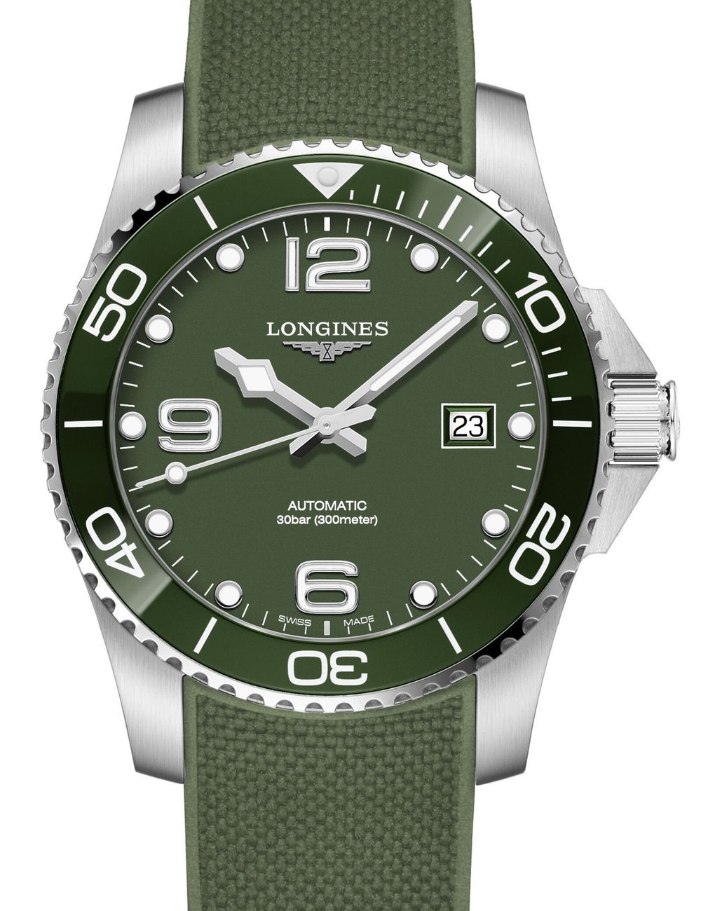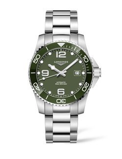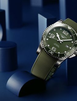 Longines’ HydroConquest collection is now available in green hues. Adding to range, that has models of blue, grey and black, the new additions in tones of green derive their inspiration from the fascinating world of aquatic sports and feature a bezel enhanced with a coloured ceramic insert adding a touch of brilliance and