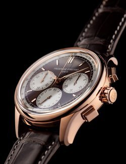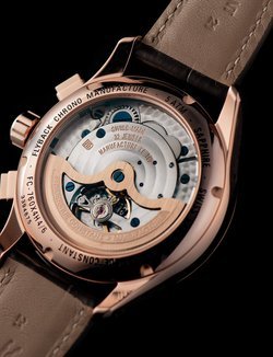 The conventional flyback mechanism is based on a set of several column wheels that act as a system of clutches. The FC-760 calibre that operates the Flyback Chronograph Manufacture dispenses with this complexity, replacing the standard column wheel with a star-shaped wheel. This results in a thinner movement with fewer parts and operations. The FC-760 calibre from Frederique Constant is simpler, smoother and more reliable.