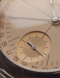 The School Piece case pays due reverence to a time when watchmakers converted pocket watches into wrist worn timepieces. The company’s ’ball-shaped’ crown proffers ease of manipulation and an abundance of eye appeal. The vertical flank of the crown features a domed circlet, a shape repeated on the sides of the graceful, arcing lugs.