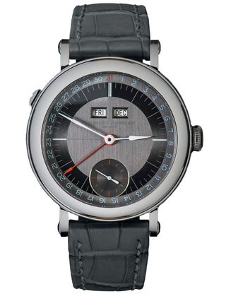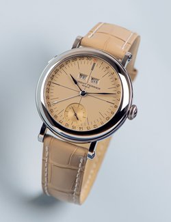 Hours and minutes in the centre. Small seconds at 6 o´clock. Power reserve area indicator on the back side. Annual calendar.