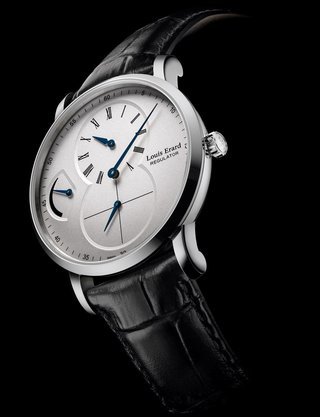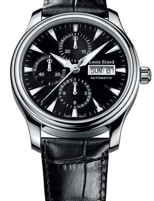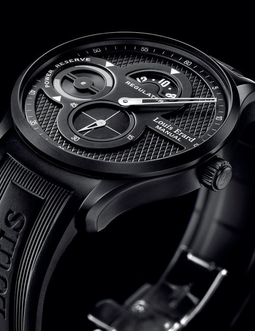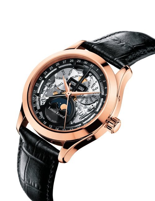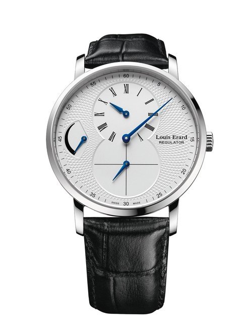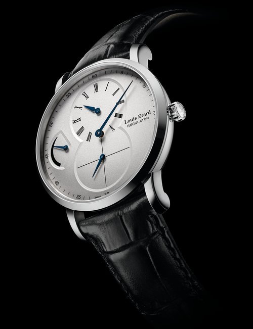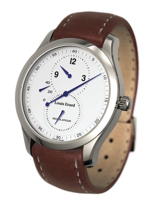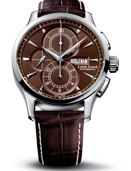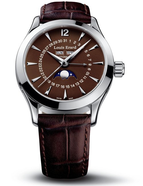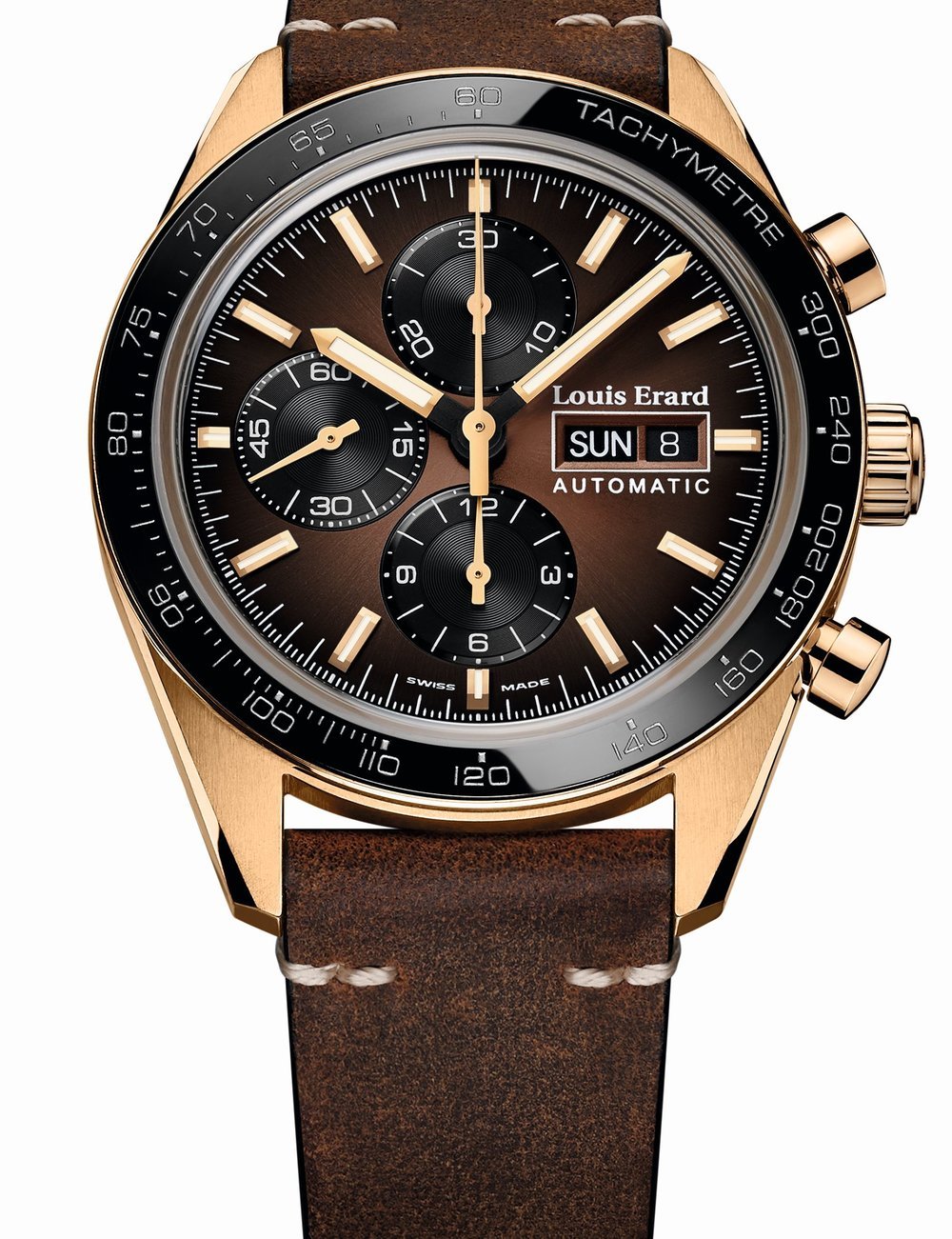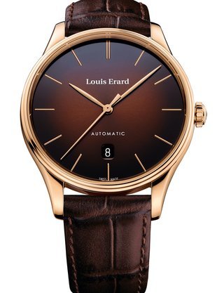 The watch cases are topped with an extra-domed sapphire glass coated with an anti-reflective treatment, emphasizing the neo-vintage character of the smoked dials available in four shades: earth, fir trees, sky and mist, four hues that evoke the Jura, the birthplace of Louis Erard. The brown and green versions are nestled in bronze cases. The blue and black versions are coordinated with grade 5 titanium.