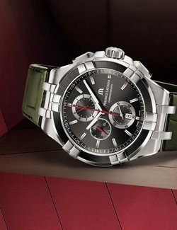 The case of the Aikon Quartz Three-hands is available in a diameter of 42 mm while the chronograph version remains a faithful 44 mm. Maurice Lacroix has placed a black PVD steel bezel on the flat side of both of these models. The raised arms contrast playfully while retaining their satin-finish steel. The dial is