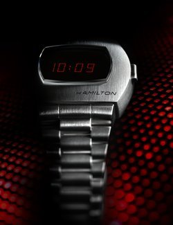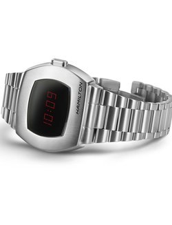 In 1970, Hamilton changed the way the world told time with the debut of the Hamilton Pulsar. Fifty years later, the Hamilton PSR celebrates the launch of that revolutionary first digital watch. Today, an hybrid display and a stainless steel case bring this game-changing invention back to the future.