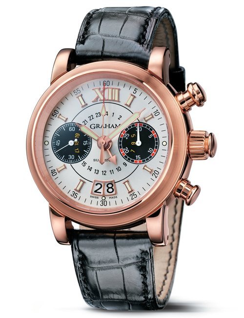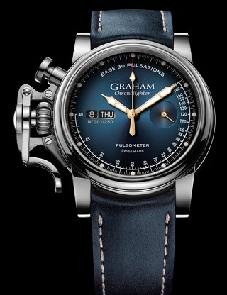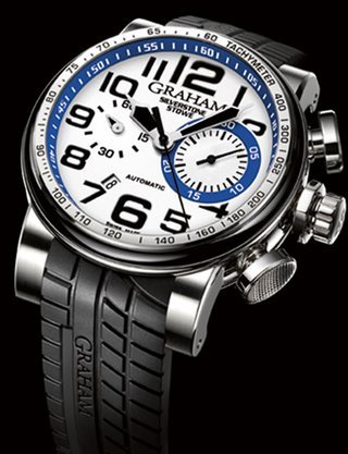Hours, minutes, seconds. Chronograph (seconds, 30 minutes counters). Date at 9 o'clock.