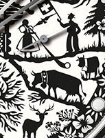 The typical Poyadepiction, linked to rural traditions, shows the climb of the cow herd to the mountains pastures. Combined with a brown and white cowhide strap, the watch pays tribute to the Swiss heritage of beliefs and usages as well as the memory of ancestors.