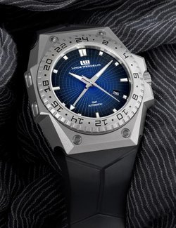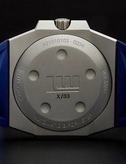 Blue rubber strap (interchangeable steel bracelet or textured calfskin midnight strap)