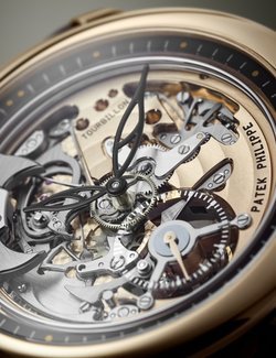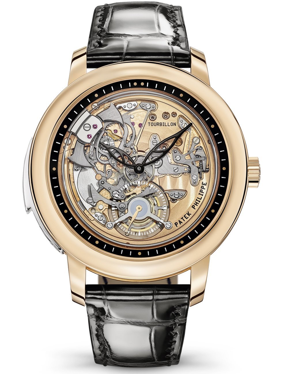 Never before had Patek Philippe crafted a minute repeater with a striking mechanism that was visible on the dial side. The Ref. 5303 was unveiled in 2019 in a limited edition of 12 watches as a world debut on the occasion of the “Watch Art Grand Exhibition Singapore 2019”. Now, a slightly modified version of the Ref. 5303 Minute Repeater Tourbillon has become part of the current Patek Philippe collection. This new complication stands out with its open architecture without a conventional dial.