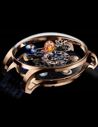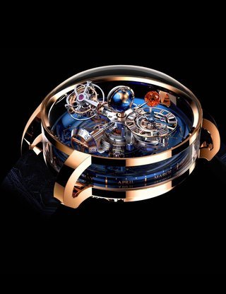 The tourbillon Jacob & Co. uses in the Opera Minute Repeater is anything but a traditional tourbillon. Rather, it is a high-speed triple-axis tourbillon, turning in three minutes on one axis, 48 seconds on the second axis, and 24 seconds on the third. This ballet of high-end mechanics is in constant motion, keeping the timekeeping precise.
