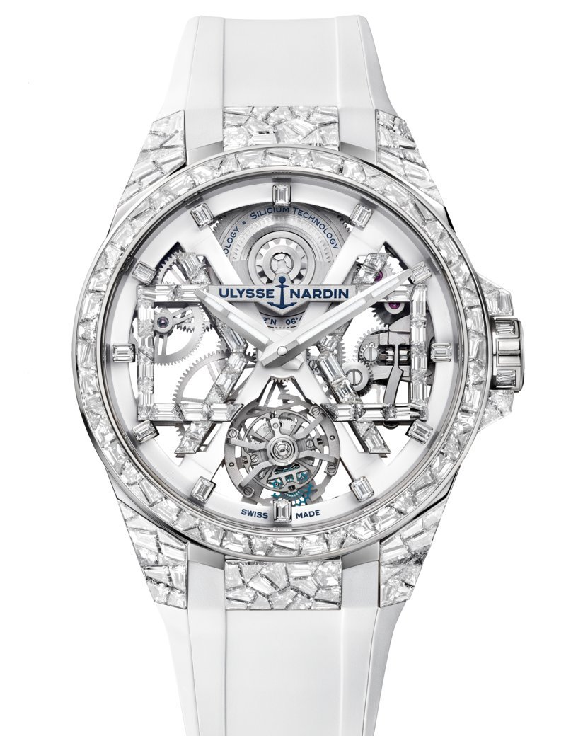 With an explosion of 85 distinct and unique cuts of diamonds, this masterpiece is composed of a stunning 211 diamonds for a total weight of 13 carats. The symbolic “X” – trademark of Ulysse Nardin – is also set with sparkling diamonds, embedded directly into the watch face, sealing the seamless look of timeless elegance and luXury. The self-deploying buckle is itself adorned with 1.22 carats of pure brilliance. The crown, bezel and index hands are also set with hand-faceted diamonds, each part an original work of art in and of itself. It is a treasure to be enjoyed up to 50 meters in depth as you bask in the sun glinting off the waves.
