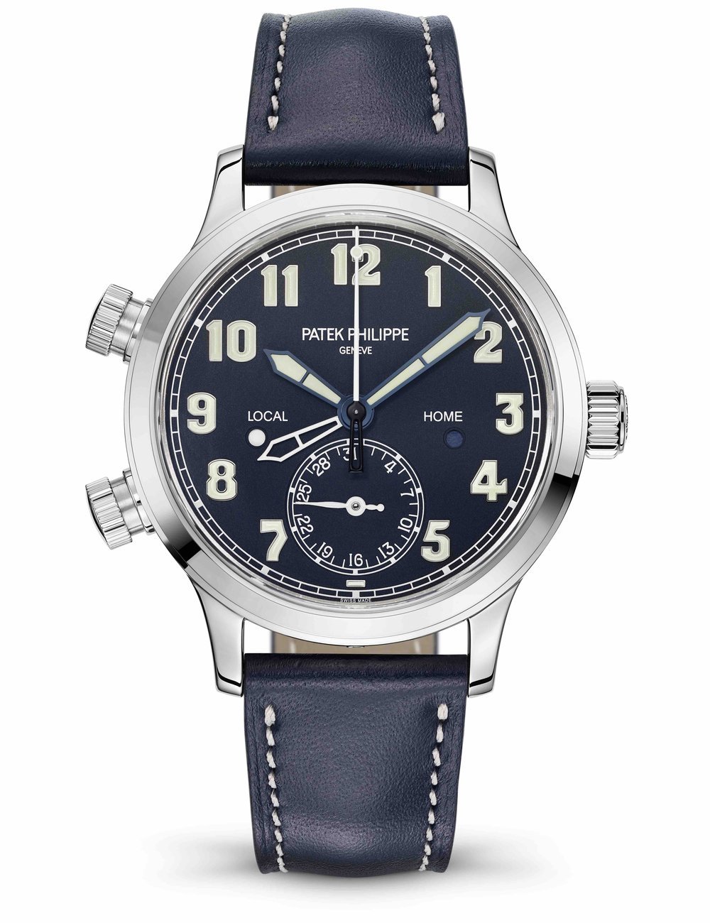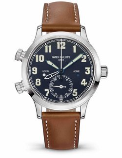 The Ref. 5524 Calatrava Pilot Travel Time with a second time zone and an analog date coupled to local time was launched in 2015 with a 42-mm white-gold case and a blue dial. It was followed in 2018 with a new interpretation in rose gold that was also available with a case diameter of 37.5 mm (Ref. 7234). Now, Patek Philippe is presenting this medium size for the original white-gold model as well.