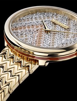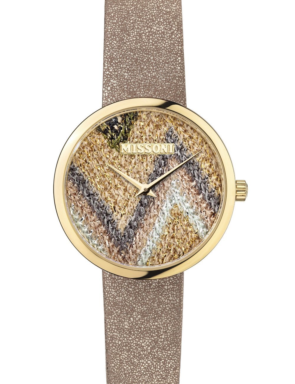 A third version, which is a perfect idea for Christmas, comes with a precious dial embellished with a zigzag knit lamé fabric hallmark of the Missoni style. The gift set is offered with an interchangeable metal bracelet or lurex strap.
