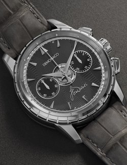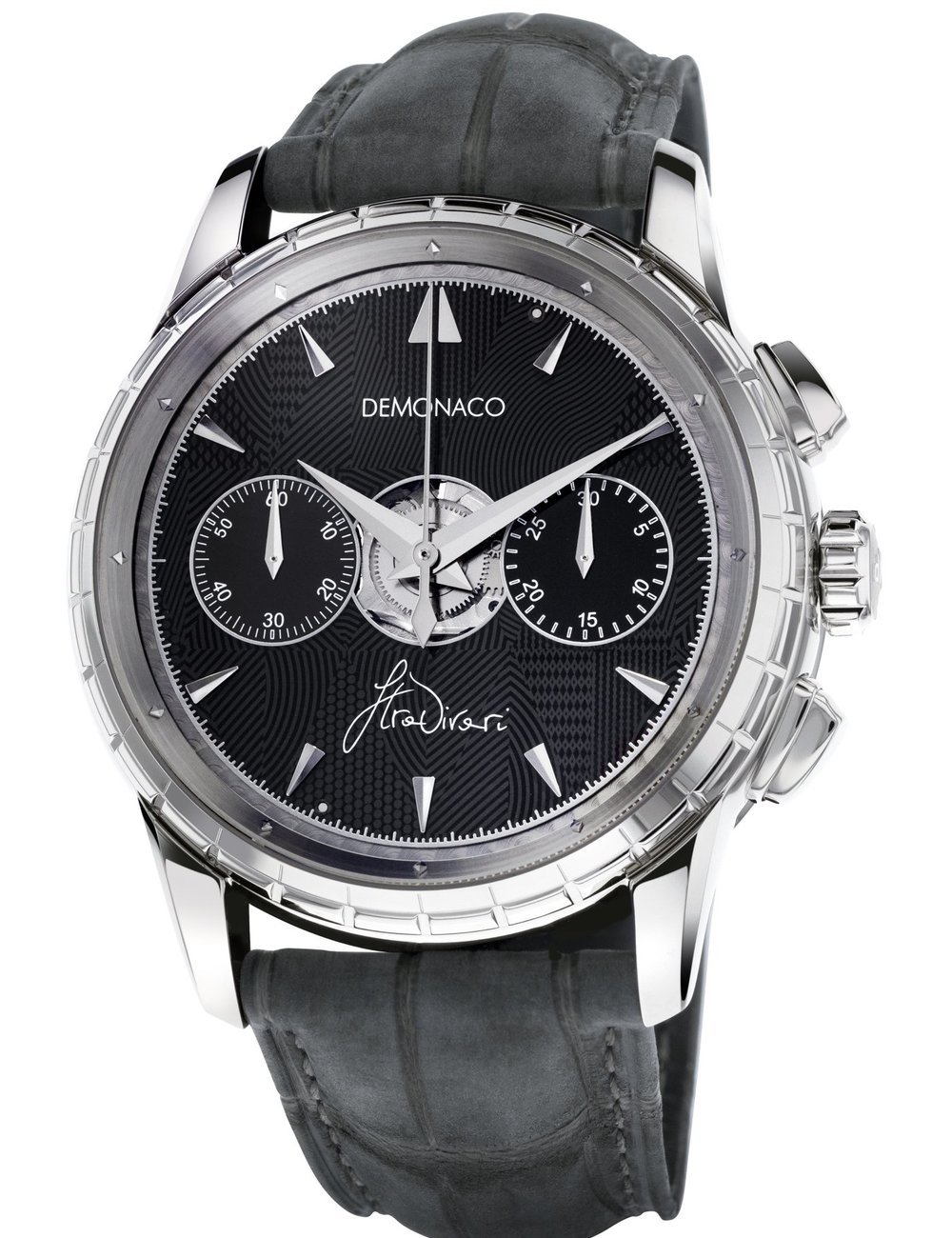 Automatic dMc-760 calibre. Flyback chronograph with patented ‘’Direct return to zero’’ mechanism. Alternances 28800 beats/hour (4 Hrz). 38-hour power reserve