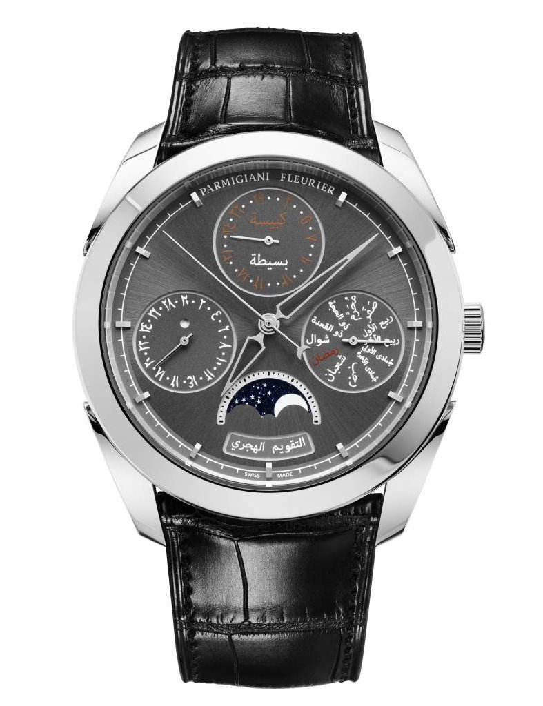 Parmigiani Fleurier presents a world premiere, it’s very first Hijri Perpetual Calendar wristwatch. The new calendar is based on technology Parmigiani Fleurier developed for an exclusive table clock launched in 2011 and inspired by the restoration of a pocket watch featuring an Arabic calendar. For the first time in Parmigiani Fleurier’s history, the Hijri Perpetual Calendar complication is made available in a wristwatch.