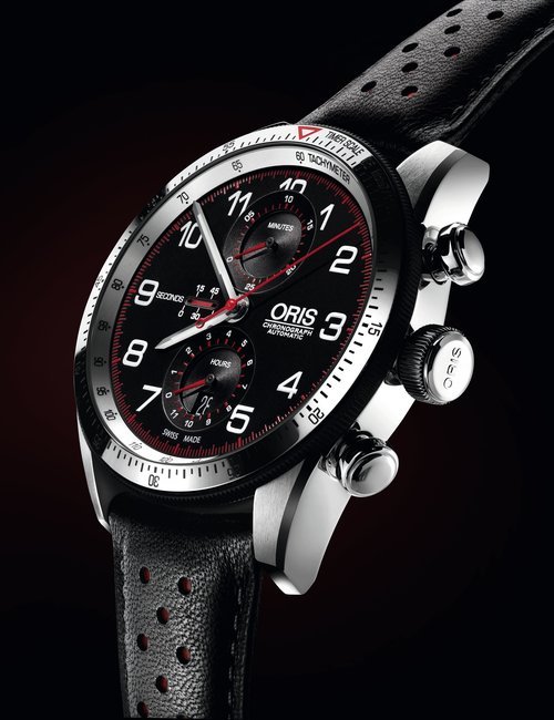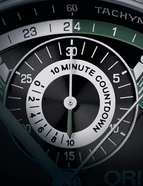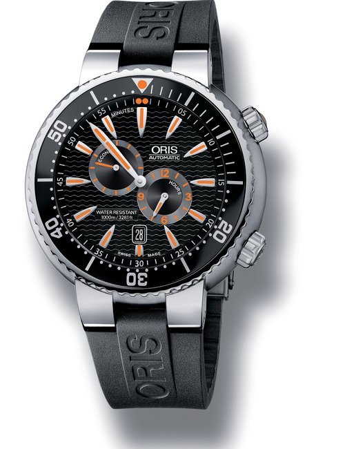 Centre hands for hours, minutes, seconds and 24 hours, date window, instantaneous date, date and 24-hour corrector, fine timing device and stop-second.